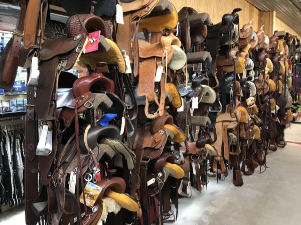 We carry a full selection of western tack; over 60 saddles in stock, bits, 100+ cinches, protective boots, headstalls, reins, kids ropes, heeler & header ropes, ranch ropes, cowboy hats, gloves, bull riding equipment, and the list goes on!